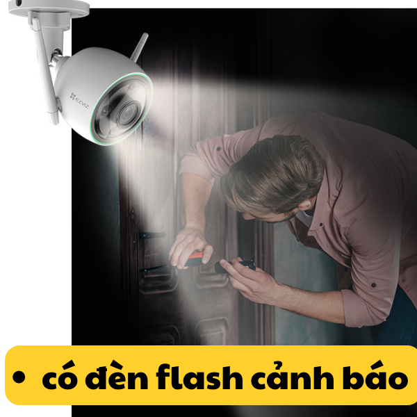 Camera H3C của Eziviz là dòng camera có tích hợp đèn flash để cảnh báo người lạ đột nhập, ban đêm có màu rõ ràng giúp người dùng quan sát tốt hơn. Đây là dòng camera chuyên lắp ngoài trời với khả năng chống nước tuyệt đối, chịu được mọi thời tiết khắc nghiệt như nắng mưa thất thường.