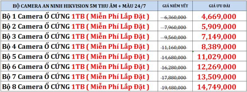 Trọn gói lắp đặt camera an ninh tích hợp thu âm có màu ngày đêm cực nét Hikvision 5M