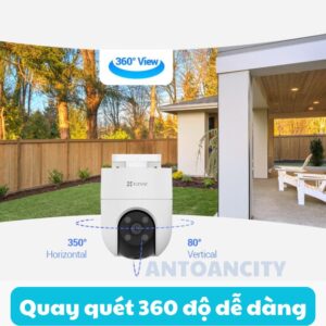Trọn bộ Camera không dây ngoài trời quay 360 độ đàm thoại 2 chiều Ezviz H8C 4M. Đây là camera giúp chủ nhà quan sát bên ngoài một cách tiện lợi, có thể điều khiển camera quay quét hết toàn bộ khu vực bên ngoài, việc đàm thoại được cũng giúp chủ nhà có thể cảnh báo những đối tượng có ý đồ xấu tránh xa. Nhất là những gia đình có người già và trẻ nhỏ hoặc đi làm xa không có người ở nhà.