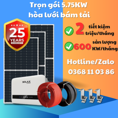 Trọn gói lắp đặt điện mặt trời 5.5kwp – 5.75kwp hòa lưới bám tải gồm: